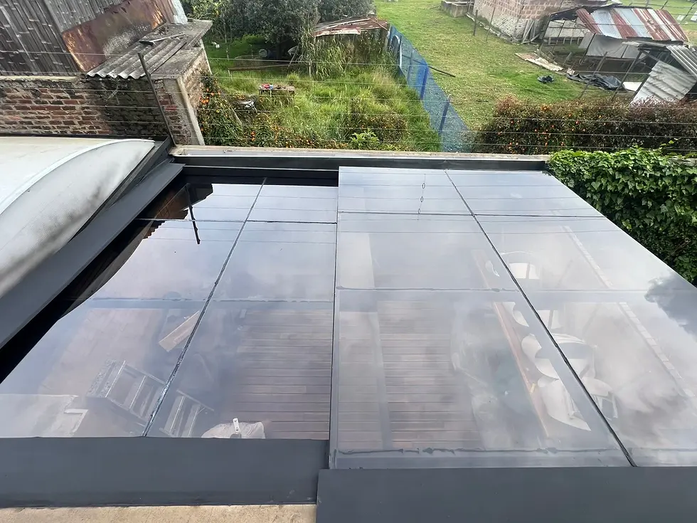 Policarbonato alveolar / vidrio laminado / teja metálica